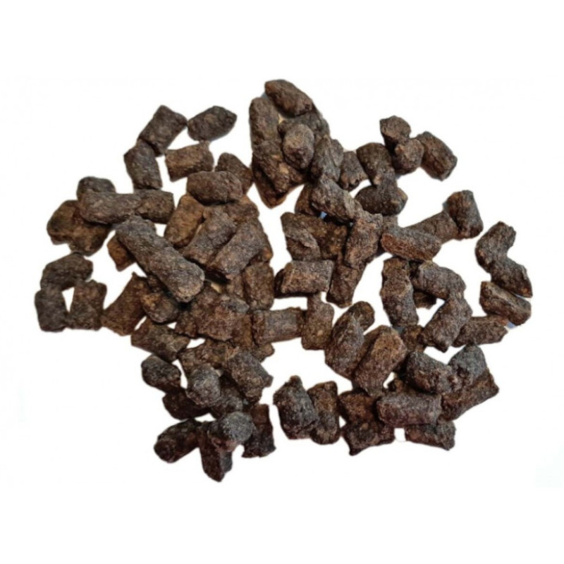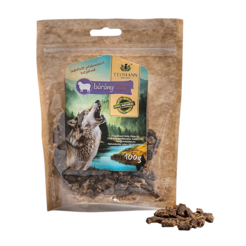 Ízletes bárányhús snack tréninghez, gyors jutalmazáshoz. Kicsi (kb. 1-1,5 cm), nem zsíroz, így könnyedén behelyezhető a zsebbe a képzés alatt, félkemény, viszonylag gyorsan fogyasztható.