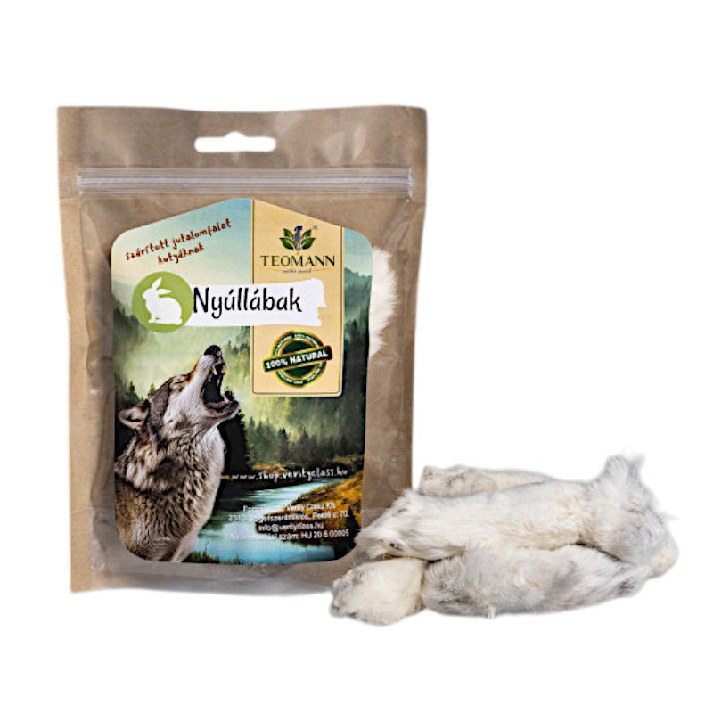 Az nyúlláb egy különleges, szőrös remekmű a négylábúaknak. Természetes rágócsont és rágóélmény. A finom szőrök által a gyomor és bélrendszer természetes úton tisztul meg így pozitívan hat az emésztésre. A nyúltermékek az érzékeny kutyáknak is adhatóak, hisz könnyen emészthetőek, ritkáb allergizálnak, emelett fog és fogíny erősítő és tisztító hatásuk is van. Erősíti a rágóizmokat, ami különösen a csak nedves táplálékon élő kutyáknak rendkívül fontos.